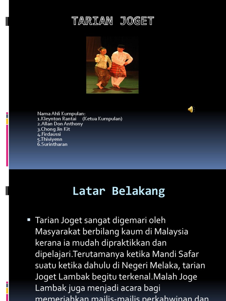 Sejenis gitar bertali 6 dan membengkak di bahagian badannya hampir-hampir separuh bulat. Tarian Joget merupakan tarian kacukan daripada negara_____ Preview this quiz on Quizizz. Selepas beberapa generasi berlalu irama joget dan tariannya berkembang ke dalam masyarakat Melayu Melaka.
